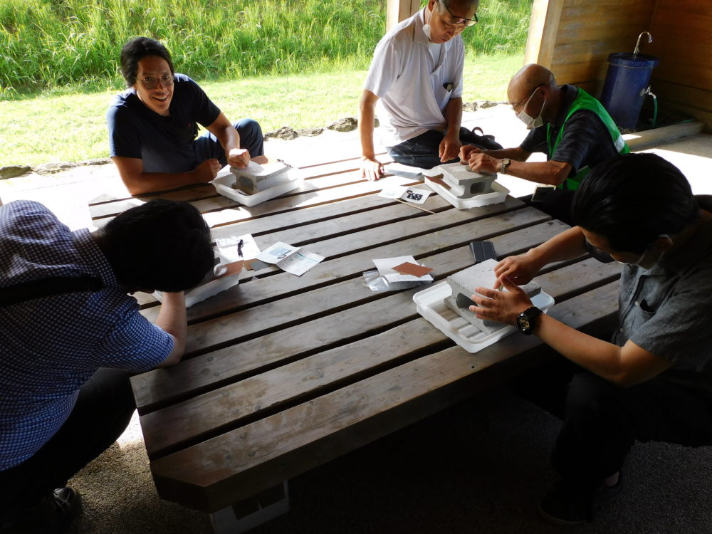 ここで予想外の・・・屋外での体験・・・しかも勾玉作りは削って作成・・・
