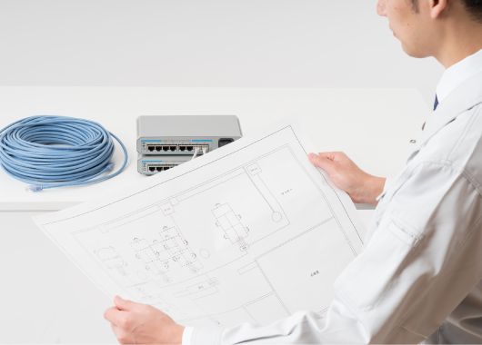 東通ネットワーク株式会社では、建設業許可(電気工事業、電気通信工事業)に基づく電気、 通信等のネットワーク工事をはじめ、それらを取り巻く機器の設置/設定まで、お客様の事業の根幹をなすインフラ周りのお手伝いをさせていただいております。